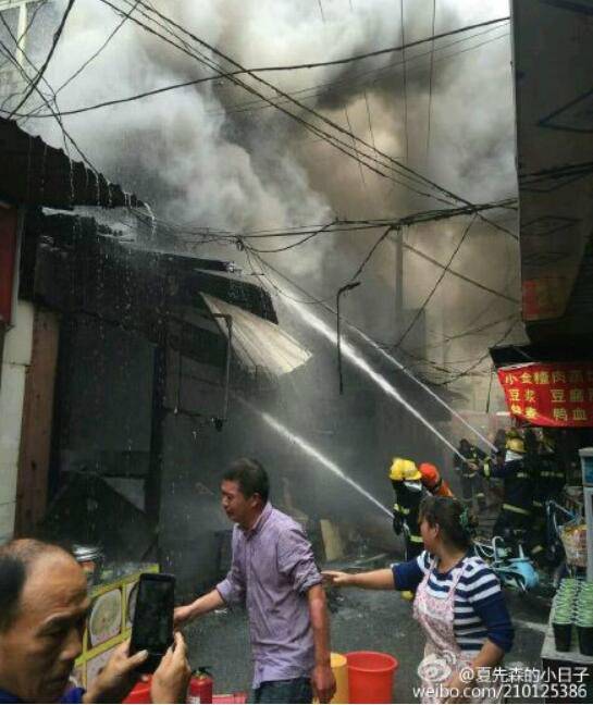 10月10日當天11時44分,位于楊家巷口的名為“砂鍋大王”的小吃店擺放在門口的瓶裝液化石油氣發(fā)生爆燃。11時47分,蕪湖市公安消防支隊指揮中心接到報警,迅速調(diào)派了兩個中隊4輛消防車30余名官兵趕赴現(xiàn)場。11時50分,液化氣瓶發(fā)生爆炸,大火很快吞沒了店面,并蔓延至三樓以及隔壁店面。